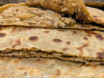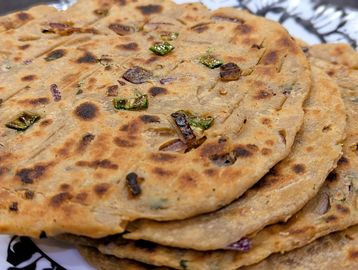 A traditional Sindhi onion paratha, lightly spiced and cooked until crisp — simple, comforting and full of flavour.