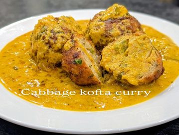 Crispy cabbage koftas made with spiced shredded cabbage, served in a lightly spiced onion and tomato gravy.