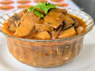 Mushrooms cooked with caramelised onions, tomatoes and freshly ground spices in a flavourful gravy.