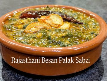 A Rajasthani-style dish made with spinach and gram flour, cooked with spices and garlic.