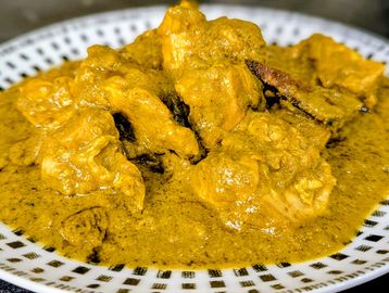Chicken cooked in freshly ground roasted spices, onions, tomatoes and coconut milk.