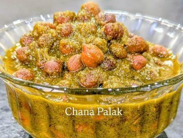 Black chickpeas cooked with fresh spinach, onions, tomatoes and mild spices.