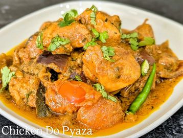 Tender chicken simmered in a rich, medium-spiced gravy with onions prepared two ways: caramelised for deep flavour and sautéed in petals for a sweet, crunchy finish.
