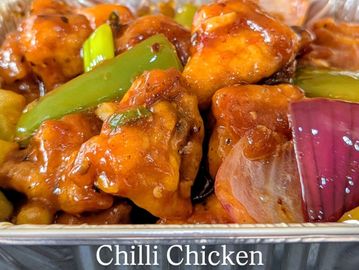 Tender chicken pieces tossed with crunchy peppers and onions in a bold, tangy garlic-soy sauce. A classic Indo-Chinese favourite with a delicious balance of spice and savoury flavours.