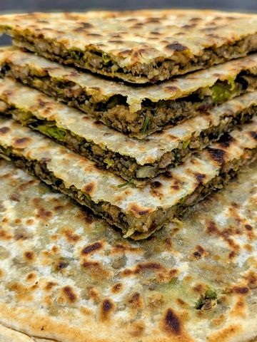 Soft paratha stuffed with richly spiced lamb mince (keema), cooked with aromatic herbs and traditional spices. Pan-fried until golden and crisp on the outside, with a juicy, flavour-packed filling inside.