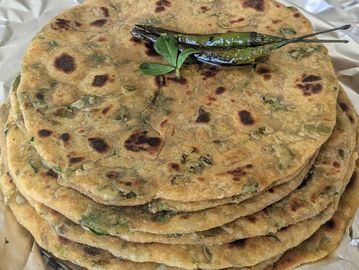 A fragrant and healthy classic Gujarati classic. These thn and soft Parathas are made with fresh fenugreek leaves and a blend of aromatic spices.