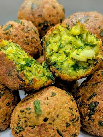 Golden and crisp outside with a soft, moist centre, prepared with a blend of green vegetables, herbs and mild spices.
