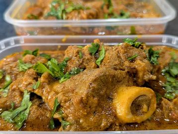 Slow cooked lamb in yogurt, onions, tomatoes, herbs and other aromatic spices.