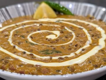 Whole black lentils and red kidney beans cooked with whole spices, onions, tomatoes butter and cream.